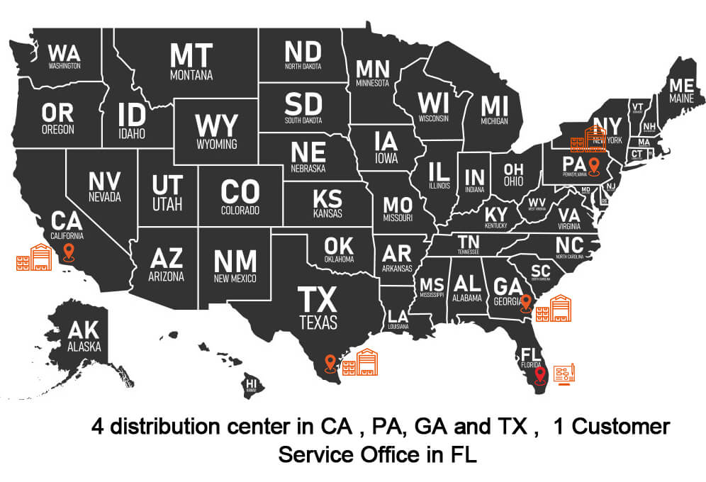 Our headquarters is located in Miami, Florida, and to better serve our distributors nationwide, we maintain inventory in strategically located warehouses in California (CA), Georgia (GA), Houston (HOU), Chicago (CHI), and Pennsylvania (PA). This allows for efficient regional pickup and faster fulfillment for our partners.