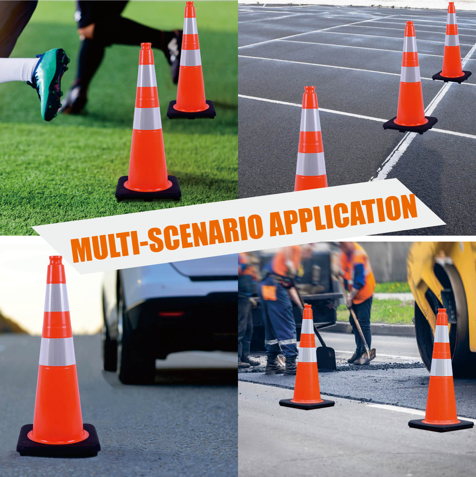 Flexible Black Base PVC Traffic Cone 12 - 36Inch with Reflective Collar: high visibility; high resilience; easy storage