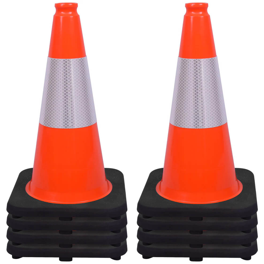 Flexible Black Base PVC Traffic Cone 12 - 36Inch with Reflective Collar: Convenient notch for carrying; Highly visible Reflective collar; Heavy-duty rubber base;