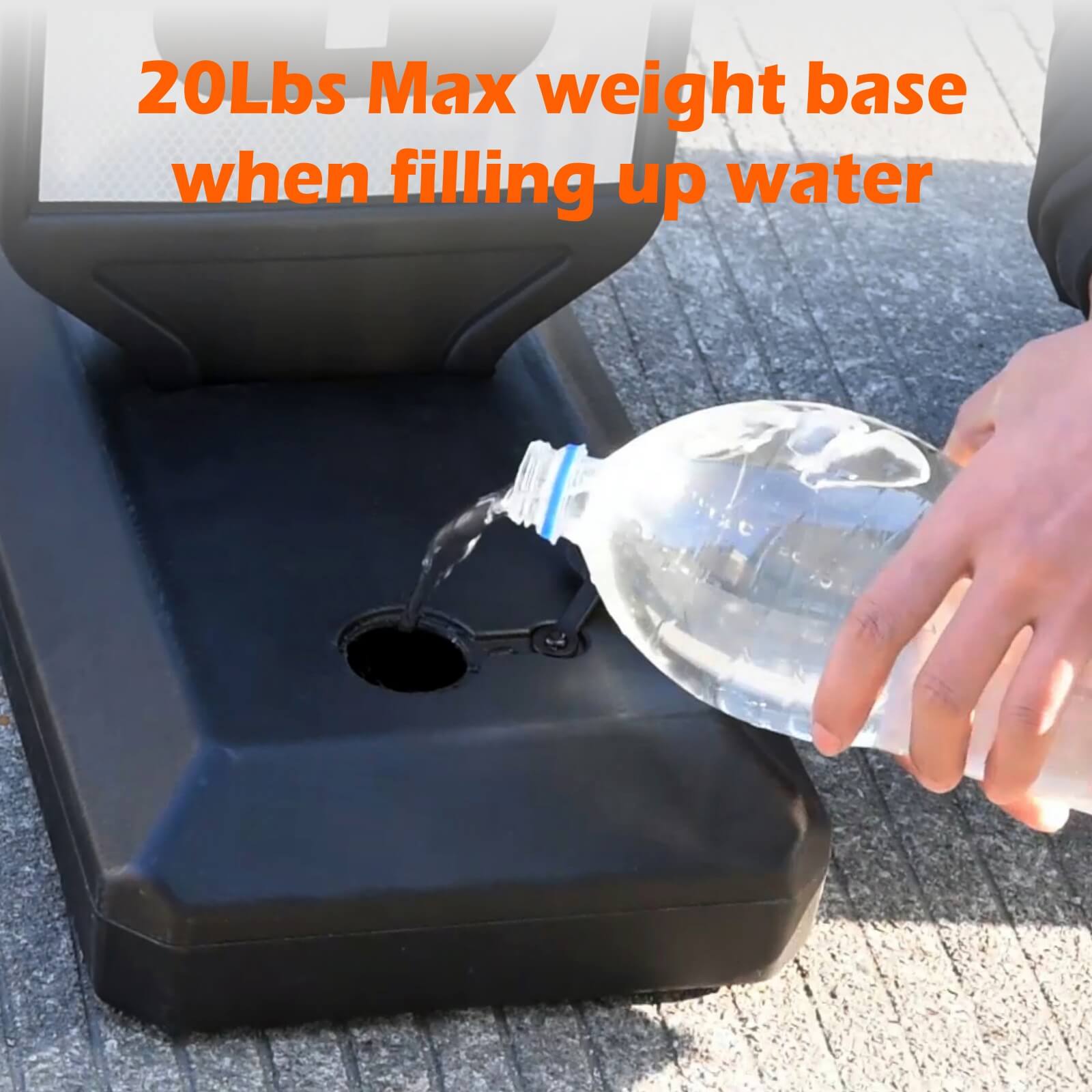 20Lbs Max weight base when filling up water;